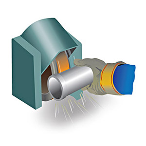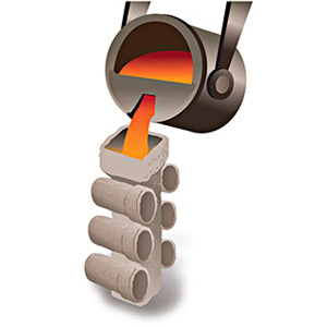 Molten metal, up to 3,000º, is poured into the hollow mold and then cooled.